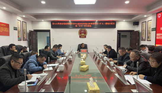 12月8日,安化县人大常委会党组书记、主任陈飞燕主持开展县人大常委会党组理论学习中心组2025年第12次集体学习(扩大)暨机关党支部“2+X”学习课堂。县人大常委会副主任龙要平、李艳云、李志生、卢映云、胡能新参加学习。
