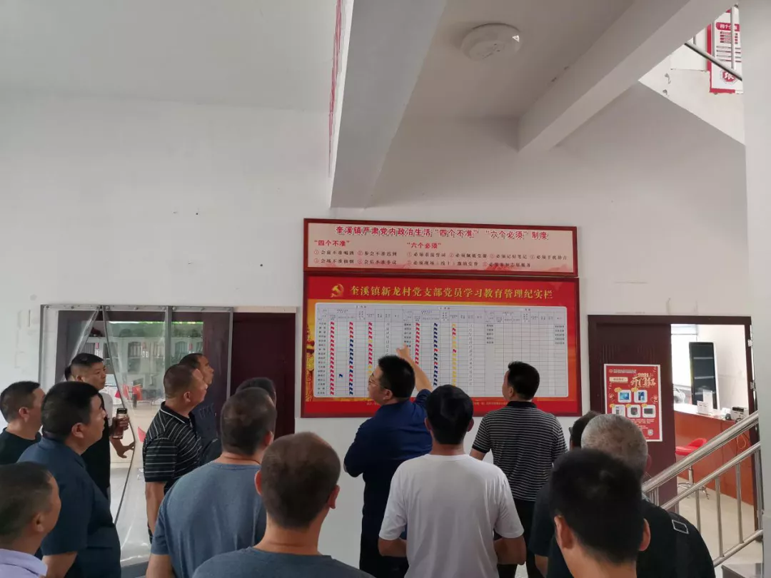 在新龙村党群服务中心,考察团详细了解了新龙村乡村振兴发展布局,听取兄弟乡镇在基层党建、移风易俗、公共设施建设、乡村文化建设、农村环境综合整治等方面的经验与措施。