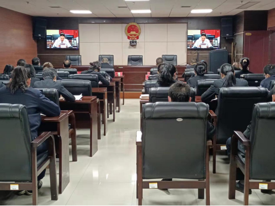 4月14日,安化县人民法院组织干警参加全省法院第五次党建工作视频会议。