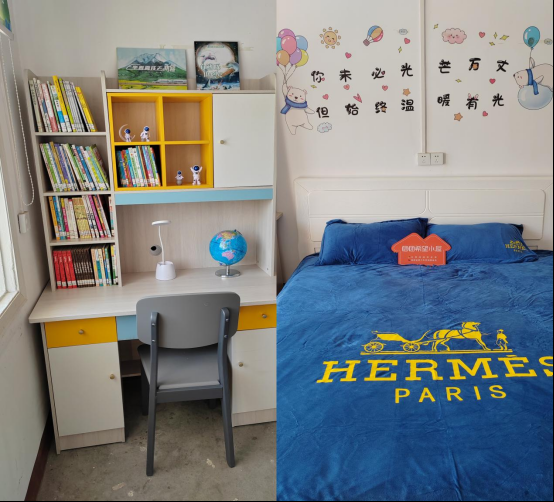 “我最喜欢这个明亮的房间,以后就可以常来啦!特别是书桌上摆放的造型生动的宇航员摆件,因为我的梦想就是像神舟十四号航天员陈冬、刘洋一样成为一名探索宇宙奥秘的宇航员。”贫困学子小亮如是说道。