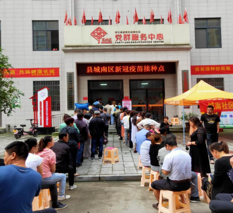 5月26日清早,安化县城南社区党群服务中心一楼大厅里居民群众络绎不绝,忙碌的志愿者身影随处可见,现场井然有序。为方便居民群众就近接种,切实解决群众关心关切问题,县城南区管委积极与县疫情防控指挥部、县卫健局对接,在城南社区新设一个新冠疫苗临时接种点,践行“我为群众办实事”。