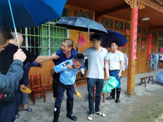 (苍场村党员干部帮助转移地质灾害点群众) 7月3日上午强降雨期间,全镇各职能部门、各村(社区)党员干部、驻村工作队迎“汛”而上,奔赴在防汛抗洪抢险第一线,筑起了防御的铜墙铁壁,及时救助帮扶困难群众,让党旗始终在基层一线高高飘扬。镇村两级党员干部众志成城,全力排除积水和水浸情况,对水灾情况严重村开展交通疏通,排查山体滑坡、临时构筑物安全隐患,对存在危险的通道实行限行,走村入户为困难群众提供帮助。雨情水情减弱后,党员干部们又马不停蹄开展预防持续暴雨带来的次生灾害工作,备足防汛抢险救灾物资,应急救援队24小时随时待命。