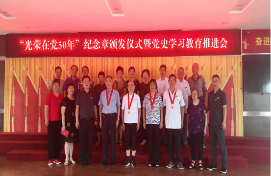7月5日,县中医医院退休党支部举行“光荣在党50年”纪念章颁发仪式暨党史学习教育推进会。 在支部书记带领下,全体老党员面向党旗,举起右手,重温入党誓词。党委书记欧阳晓云为4名“光荣在党50年”的老党员颁发了纪念章。 老党员代表陈尚书以《喜迎百年华诞 桑榆红心向党》为题为党员们讲述了一堂深动的党课。“我很光荣入党51年,很庆幸我还能看到医院的蒸蒸日上,虽然我已退休,但我的心是永远跟着共产党走的,听党指挥。接下来,借这个党史学习教育的机会,跟大家共同分享我与医院共成长,一生奉献给了中医事业的经历……”。当讲到动情处,陈老几度哽咽,他表示将感党恩、听党话、跟党走,当好党的政策宣传员,为党史学习教育树立标杆。 党委书记欧阳晓云向退休老党员为党的事业、中医事业作出的贡献表示衷心感谢并致以崇高的敬意,希望老党员们继续关心、关注党的建设、医院建设,为党为国为中医事业继续发挥余热。 会上,支部联点领导为1-7月份入党的党员赠送了政治生日贺卡。老党员们互相谈感受,分享学党史心得,激励自己不忘入党初心,坚定跟党走的信念。