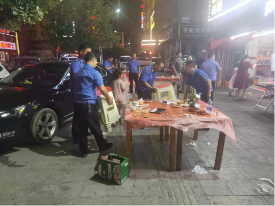 露天夜宵烧烤摊点占道经营、污染环境、堵塞交通、噪音扰民,市民群众意见很大,一直是城市管理的重点难点。针对这种“时令性顽疾”,7月8日晚间,县城管执法局直属大队集中力量对县城解放路、沿江路、云天广场、雪峰湖大道、辰溪商贸城周边等重点路段的露天排档、露天烧烤、流动摊点等影响市容环境和居民生活的违规行为进行集中整治。