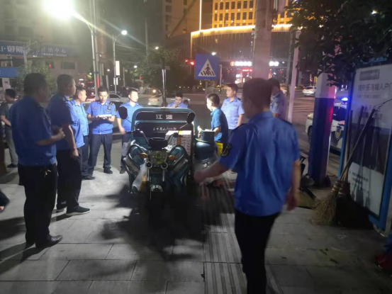 整治行动持续至凌晨1点,共出动执法车7台、执法人员35人,劝导店外经营门店17家,依法暂扣三轮摩托车5台、手推车2台、桌椅、帐篷等违规占道物品220余件。