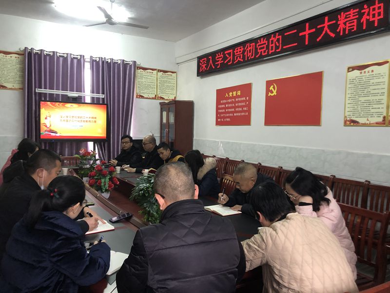 3月24日,闵家完小党支部召开会议,深入学习贯彻党的二十大精神,全体党员教师齐聚一堂,听取县教育信息中心副主任陆继新同志讲授党课。